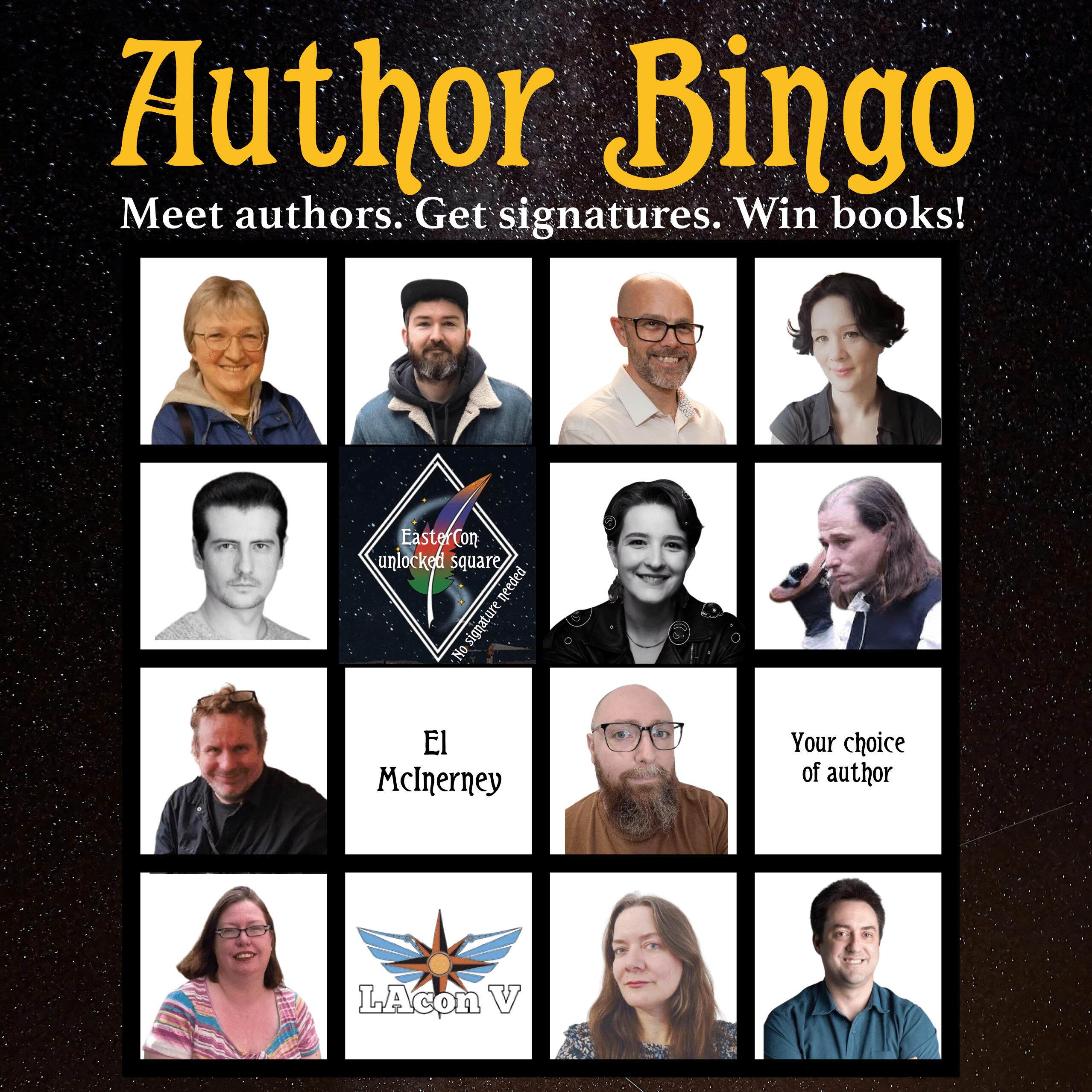 EDIT: Congratulations to this year’s Author Bingo winners, and thanks to everyone who joined in the fun!This year at Eastercon Belfast, something new is happening in the dealer room. It’s called Author Bingo, and yes, it’s exactly what it sounds like: bingo, but with authors.
